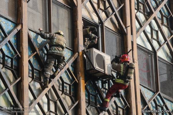 ![حادثه ی ساختمان پلاسکو(1395)، آخرین تلاش های آتش نشانان برای بریدن حصار فلزی ساختمان و نجات مردم و همکاران خود. قطعا تعداد زیادی از شاهدان این سانحه دچار اختلال استرس پس از سانحه(PTSD) شده اند]()